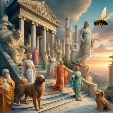 There was a giant palace filled with gods and goddesses doing stuff! He realized they had been dropped into a library where Hercules was showing how strong he was, while Poseiden was reading a book titled, “Land & Sea, Battles At Large,” while chanting, “Go sea creatures, go!” Zeus was reading to toddlers while Hera was behind a bookshelf, looking very jealous.